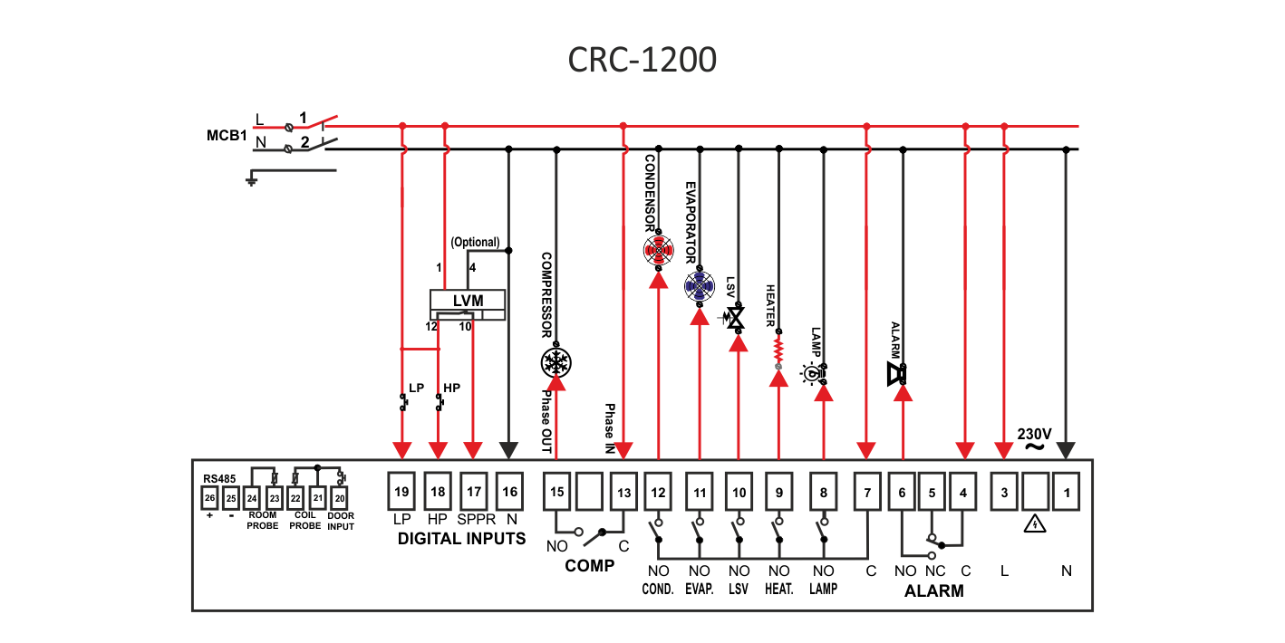 Potential(230V): HP, LP, SPPR, Potential Free: Door Input |