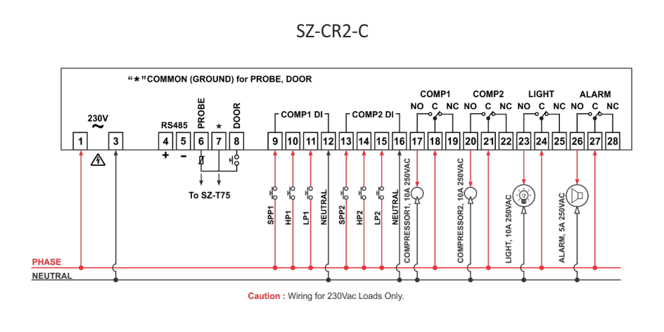 Potential(230V): HP1, LP1, SPP1, HP2, LP2, SPP2, Potential Free: Door |