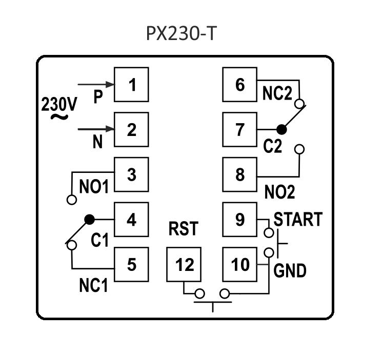 Relay1: Control: 5A, 230Vac(Res.) Relay2: Control: 5A, 230Vac(Res.) |