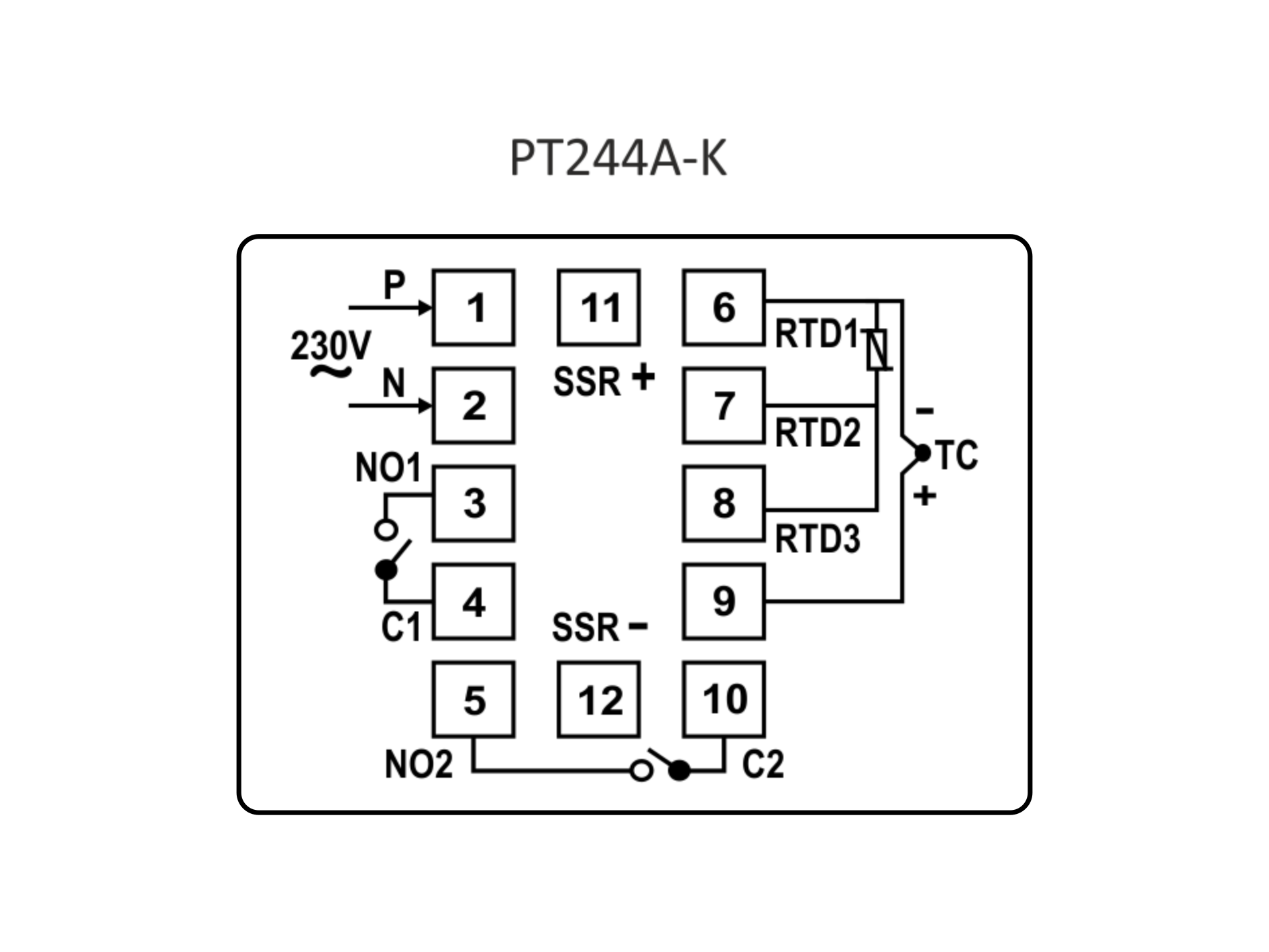 Relay1: Control output Relay: 7A, 230Vac or SSR: 10Vdc,30mA(Field Selectable), Relay2: Auxiliary Output: 7A,230Vac |