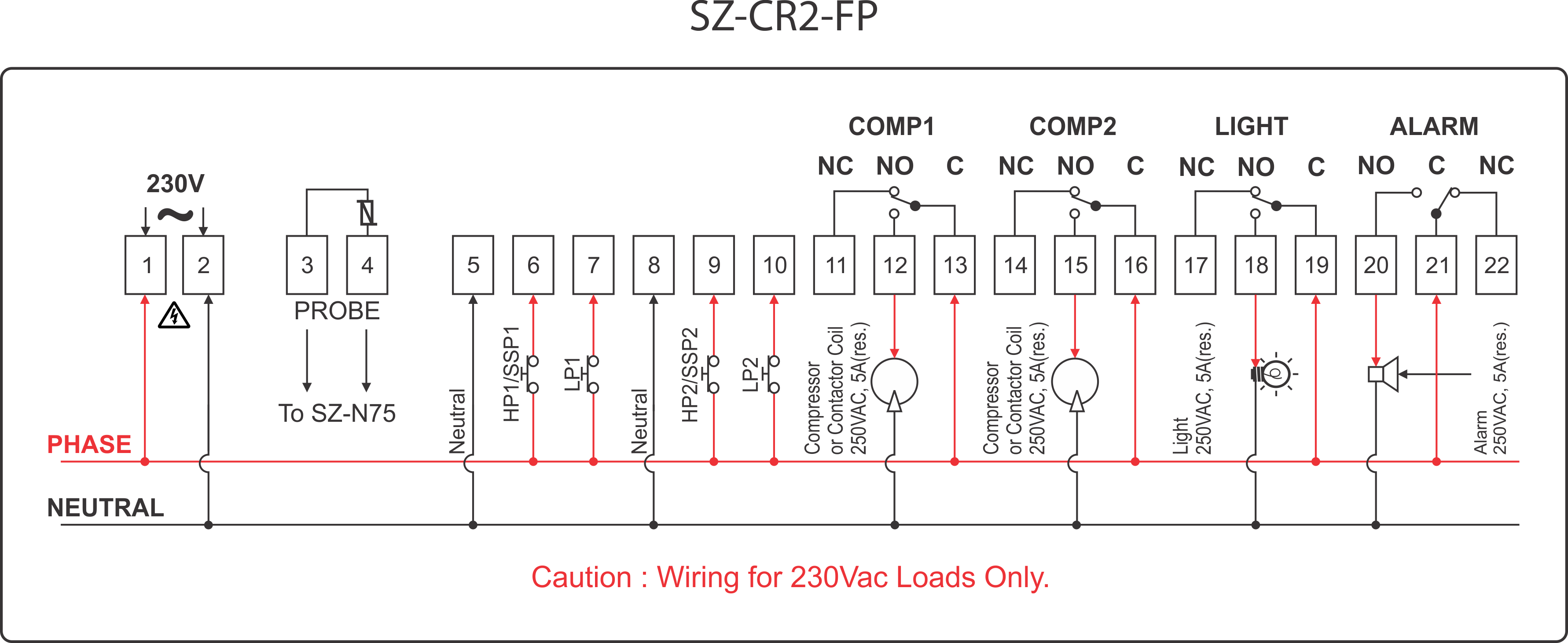 | Relay Output | Compressor1 : 5A Compressor2 : 5A Light : 5A Alarm : 5A |
