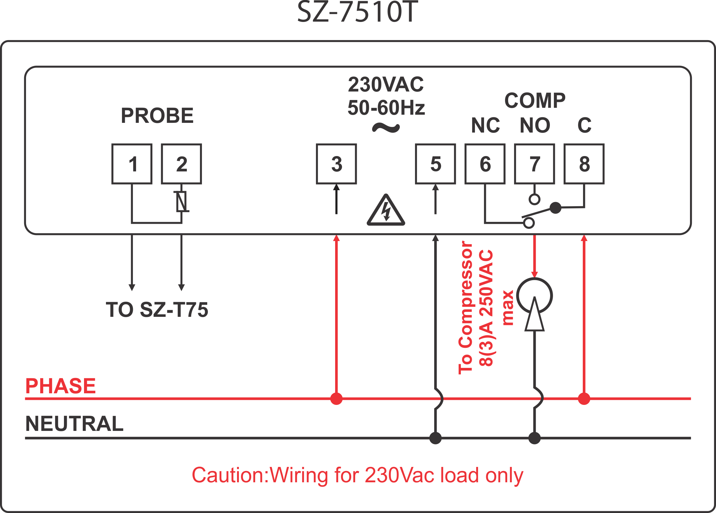 | Relay Output | Compressor : 8(3)A |